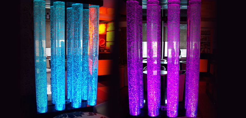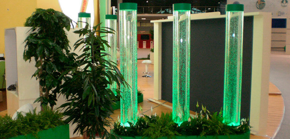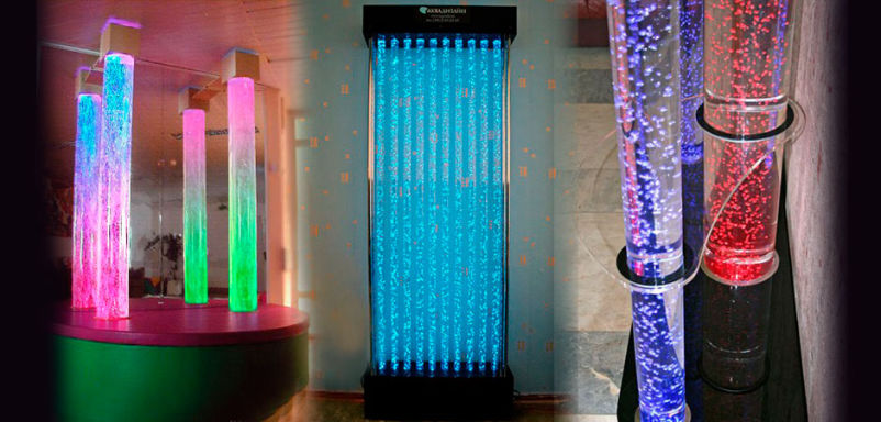 Одно из востребованных водных изделий на сегодняшний день, которое является актуальным дизайнерским элементом в создании эксклюзивного интерьера на работе или дома. ОДИНОЧНЫЕ ПУЗЫРЬКОВЫЕ КОЛОННЫ - занимают мало места и используют всю высоту пространства. ЛИНЕЙНЫЕ КОЛОННАДЫ - могут служить полупрозрачной перегородкой между помещениями или стоять у стены. ОБЪЕМНЫЕ КОЛОННАДЫ - Несколько пузырьковых колонн размещаются на одной платформе. КОМБИНИРОВАННЫЕ СИСТЕМЫ - сочетание пузырьковых колонн с другими типами водных систем. ПОДВЕСНЫЕ СИСТЕМЫ - крепятся к потолку и не имеют нижнего корпуса.